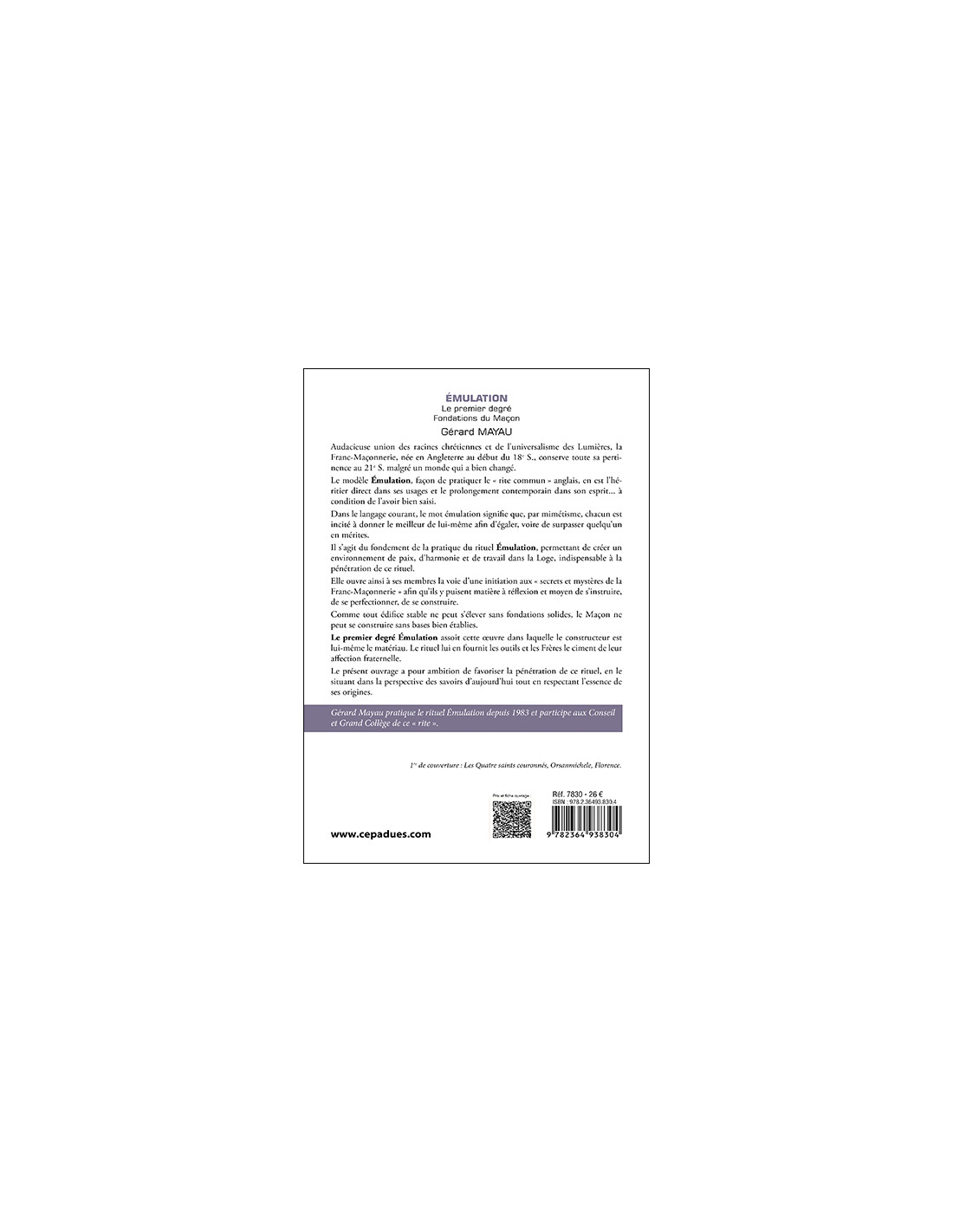 Comme tout édifice stable ne peut s’élever sans fondations solides, le Maçon ne peut se construire sans bases bien établies. Le premier degré Émulation assoit cette œuvre dans laquelle le constructeur est lui-même le matériau. Le rituel lui en fournit les outils et les Frères le ciment de leur affection fraternelle. Le présent ouvrage a pour ambition de favoriser la pénétration de ce rituel, en le situant dans la perspective des savoirs d’aujourd’hui tout en respectant l’essence de ses origines.