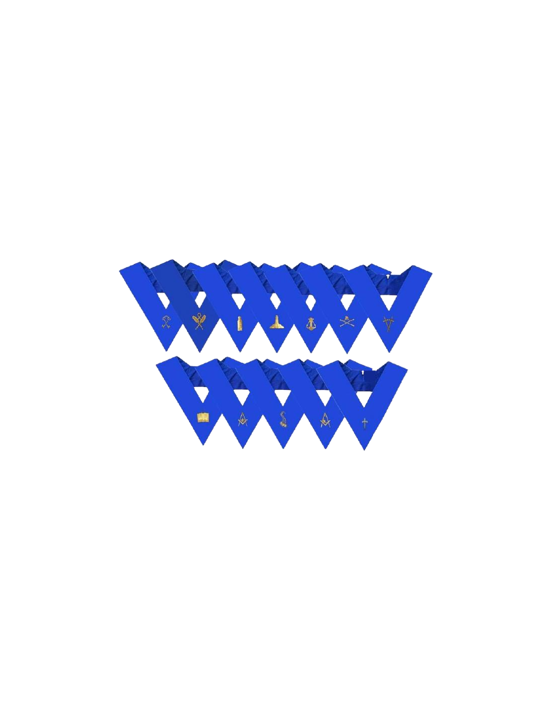 ENSEMBLE DE 12 SAUTOIRS OFFICIERS RITE YORK SUR COMMANDE 5 SEMAINES MOIRE BLEU YALE BIJOUX DECHARGE BRODE AU FIL DE SOIE ATTACHE COL ET BIJOUX POUR BRODERIE DE PERSONNALISATION AU NOM DE LA LOGE NOUS CONTACTER : boutique@adj.213-32-91-240.plesk.page