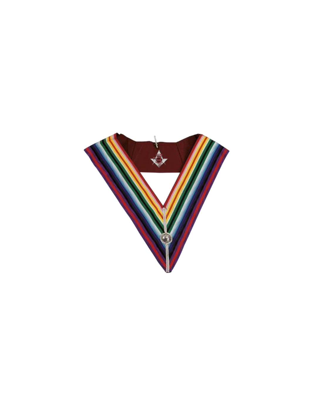 SAUTOIR PASSE COMMANDEUR NAUTONNIER RUBAN ARC EN CIEL MULTICOLORE LISERE CENTRAL + BOUTONS ARGENT + ATTACHES COL + BIJOUX ARGENT Conforme GLOMA