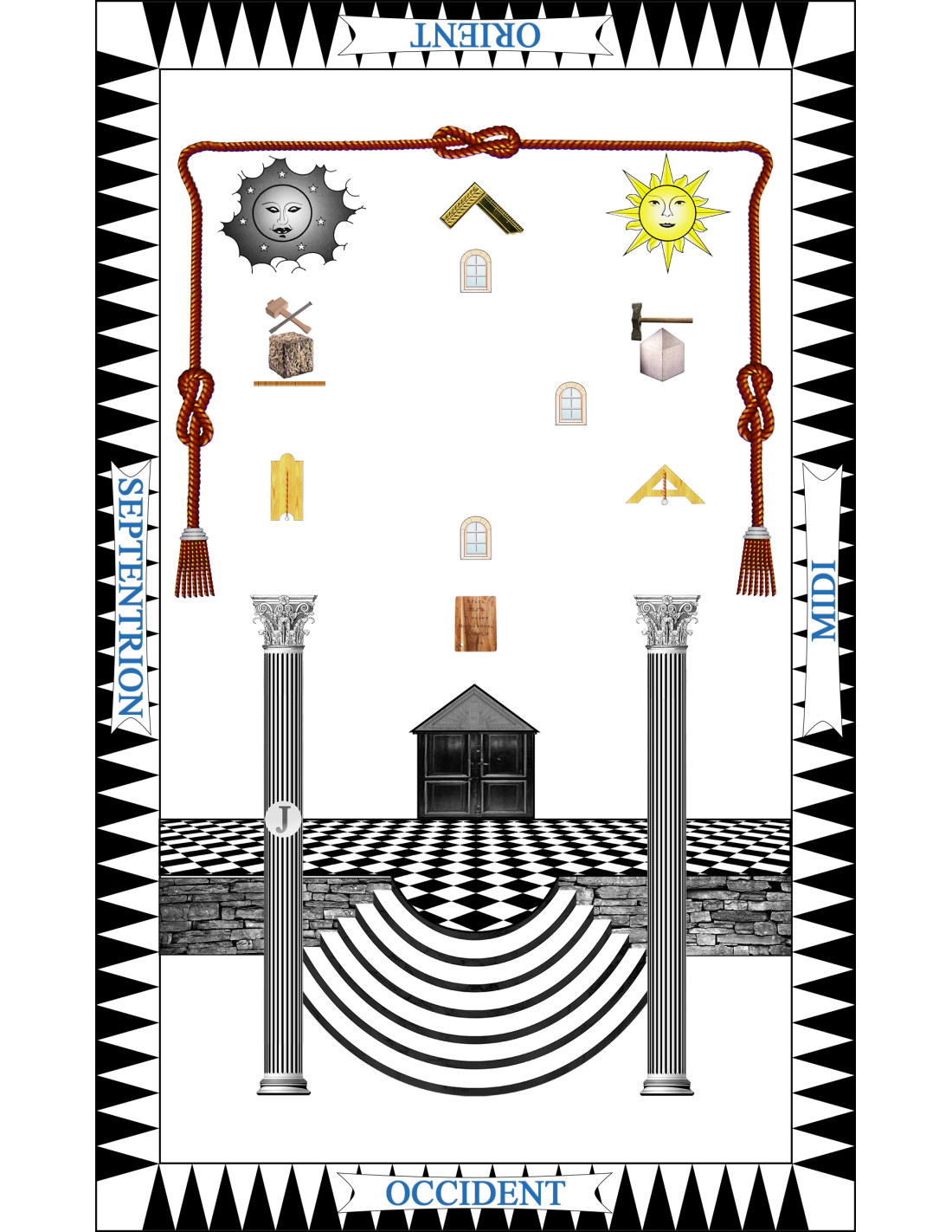 EOSPHOROS met à votre disposition ce tableau de loge 1er Grade RF (Rite Français) conforme GLAMF. Cet accessoire se destine au 1er degrès du rite Français, selon le régulateur Maçon 1801. Il mesure environ 122 cm de long et 76 cm de large.